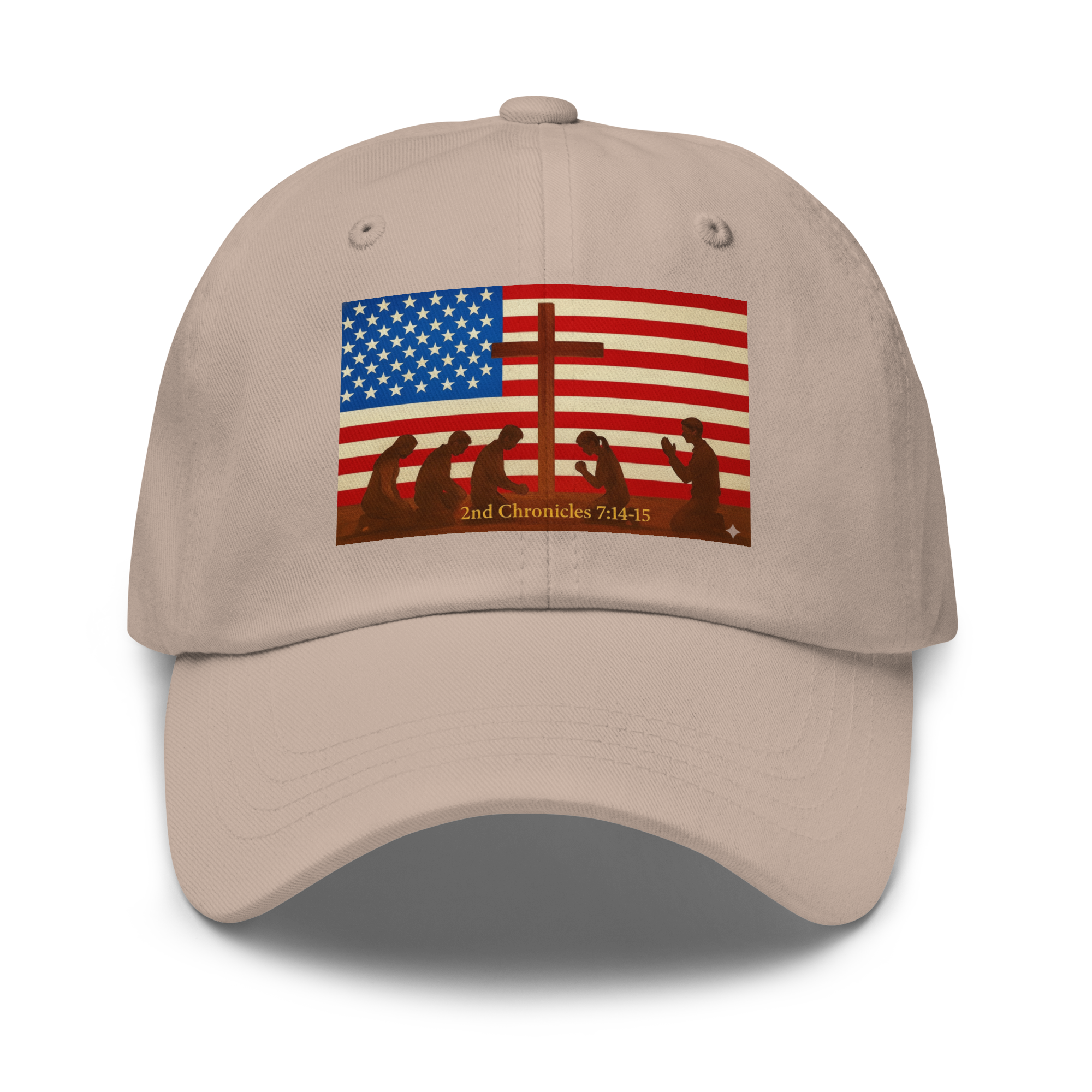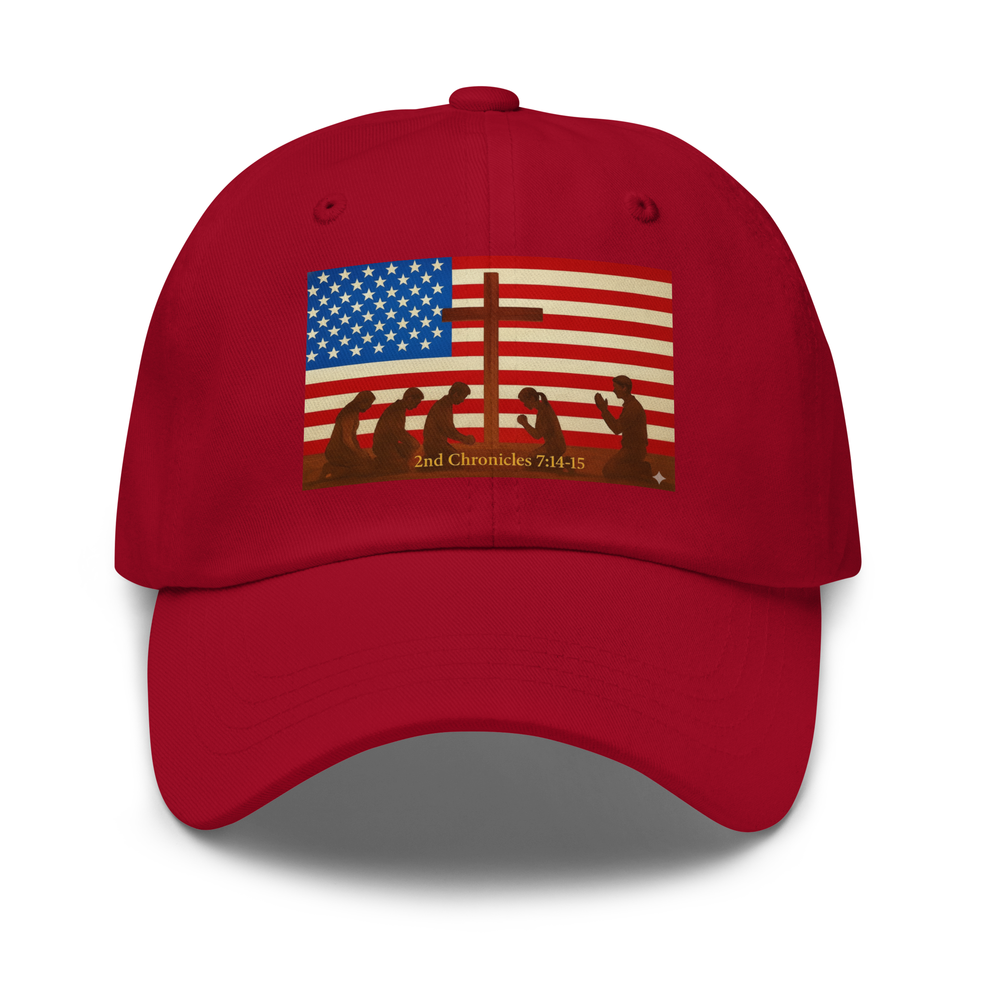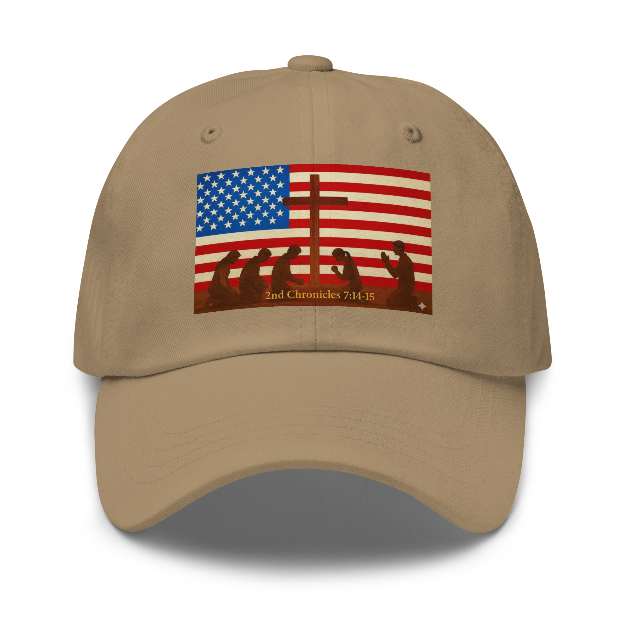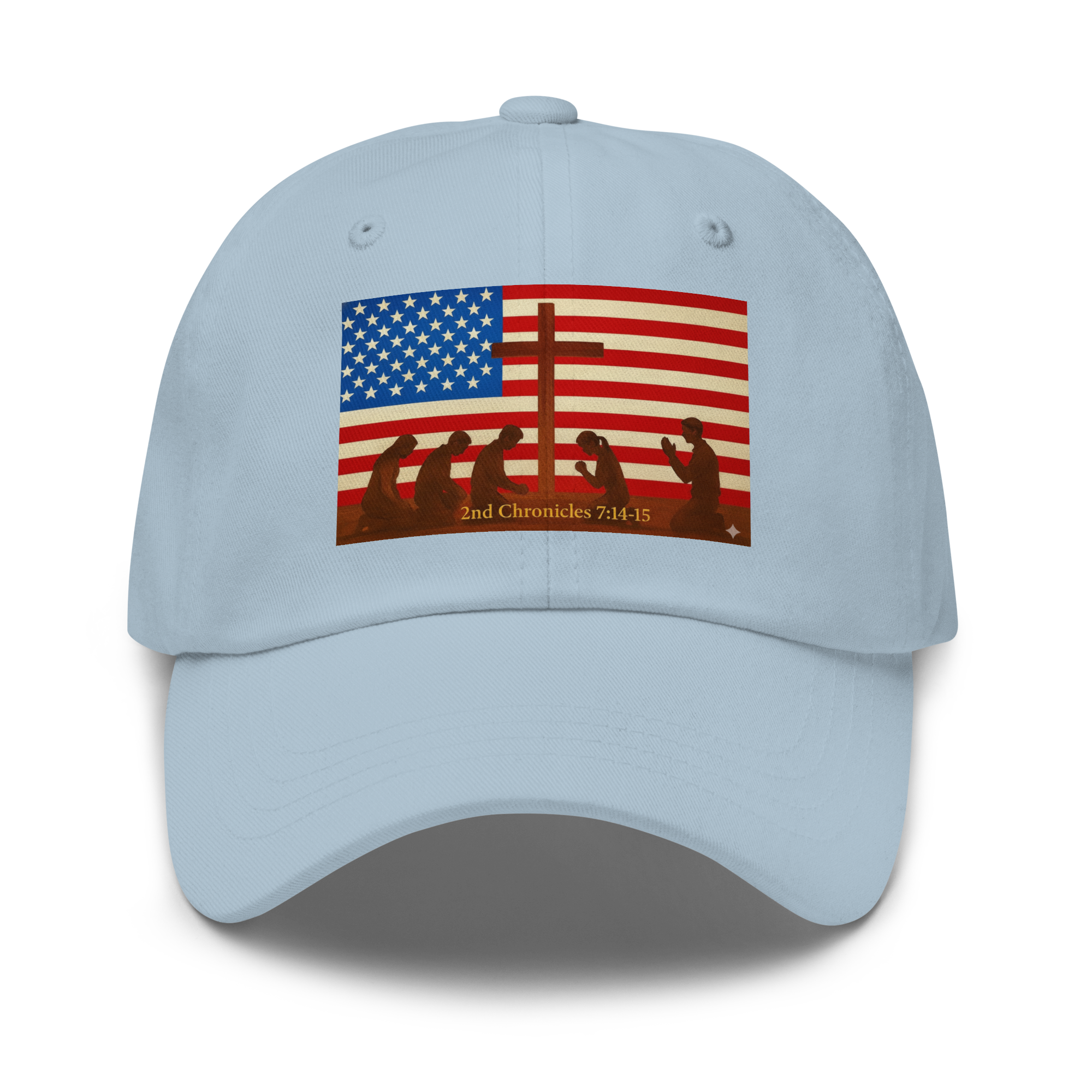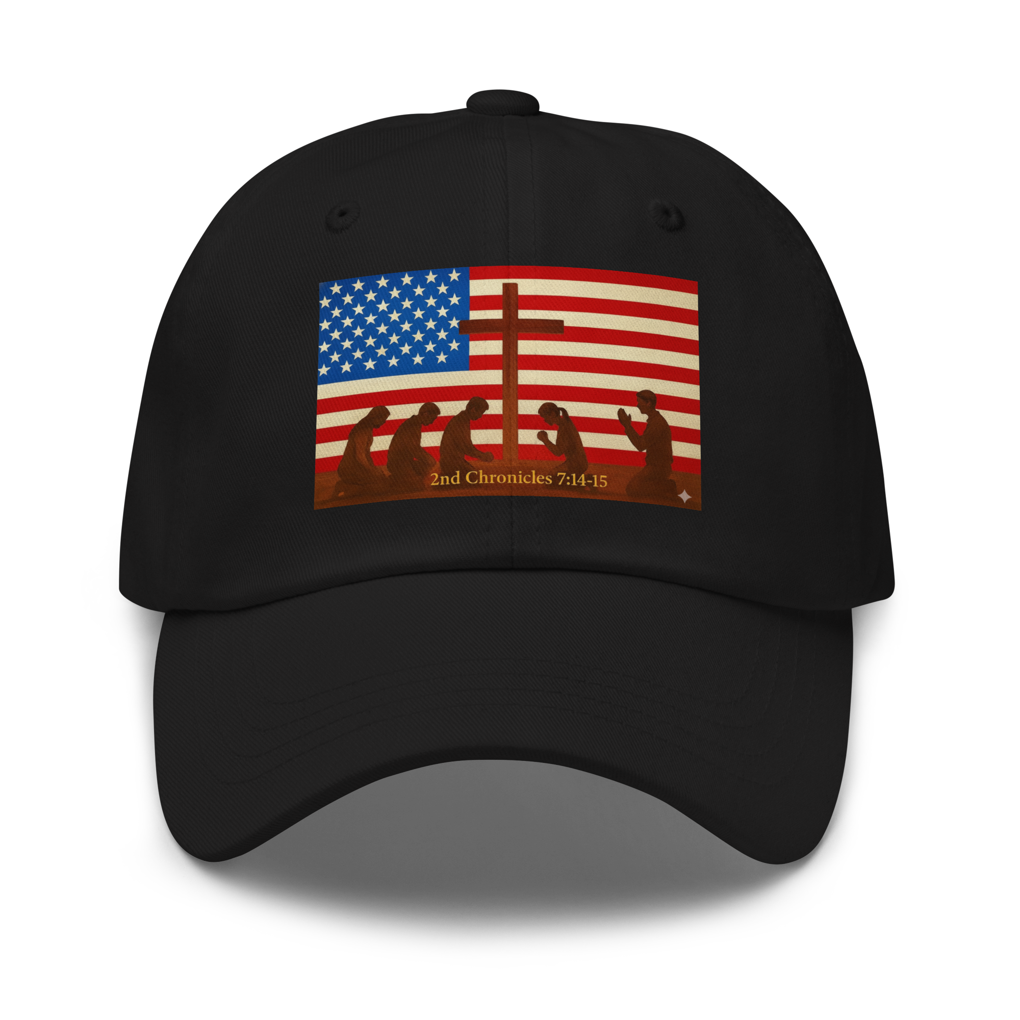 American Flag with Cross & people kneeling and praying to The Lord 2nd Chronicles 7:14-15