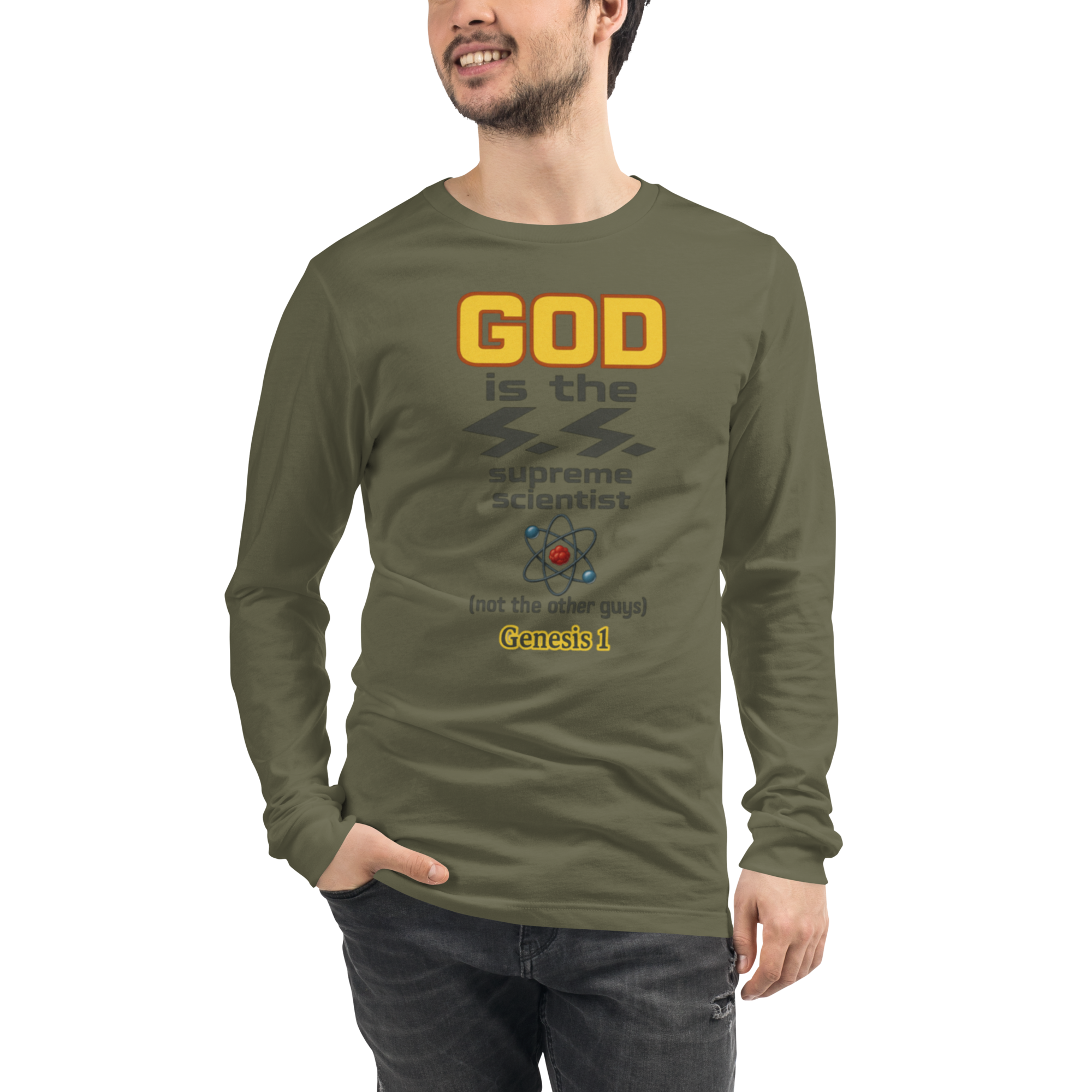 GOD is the SS Supreme Scientist (not the other guys) Unisex Long Sleeve Tee